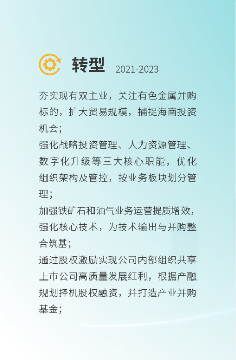戰(zhàn)略定位致力成為一家以戰(zhàn)略性資源為核心,具有國(guó)際影響力的產(chǎn)業(yè)發(fā)展集團(tuán)