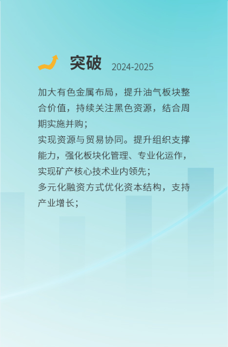 戰(zhàn)略定位致力成為一家以戰(zhàn)略性資源為核心,具有國(guó)際影響力的產(chǎn)業(yè)發(fā)展集團(tuán)